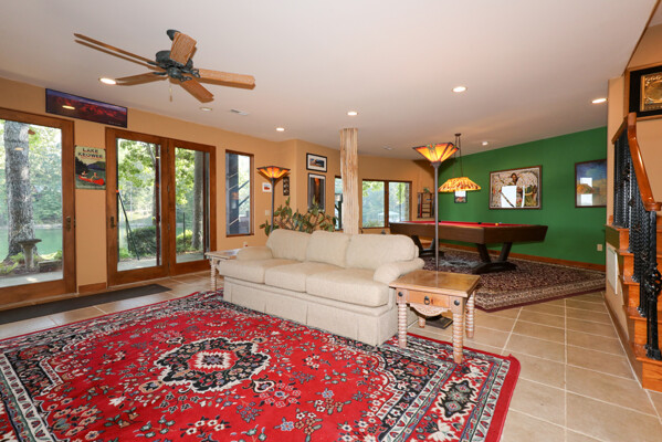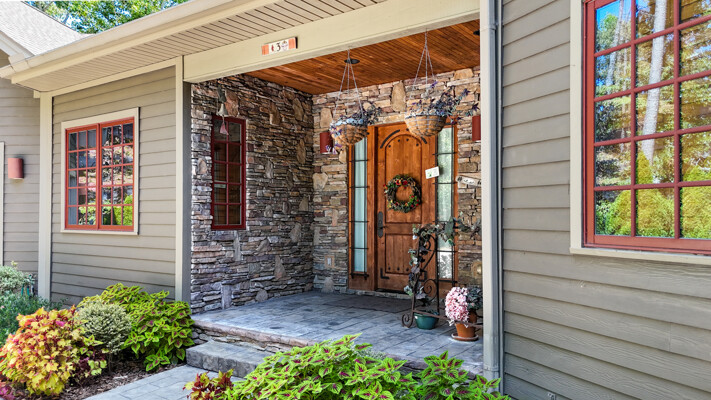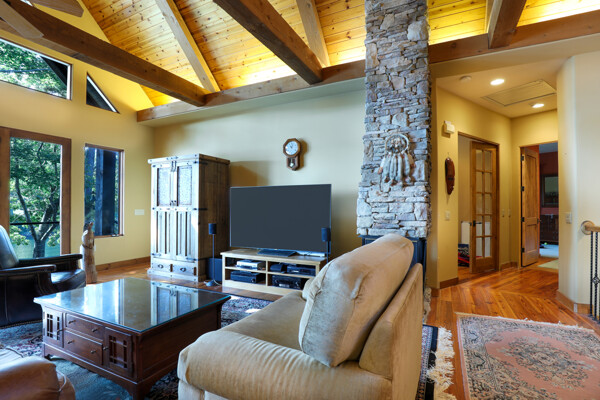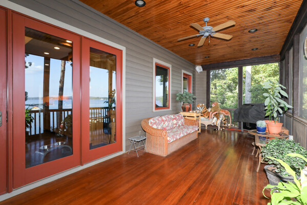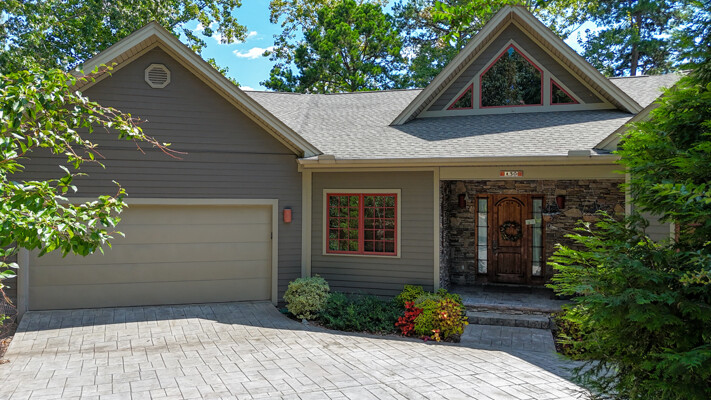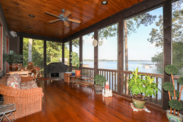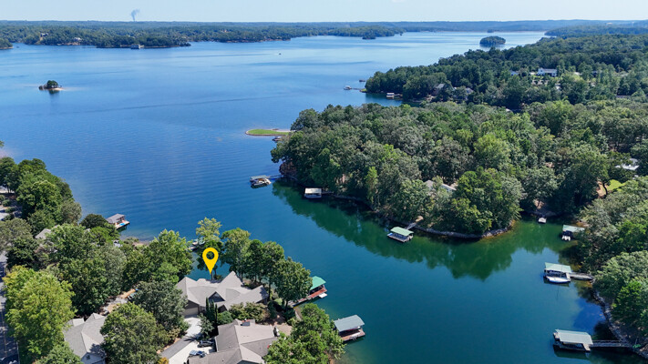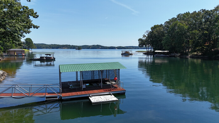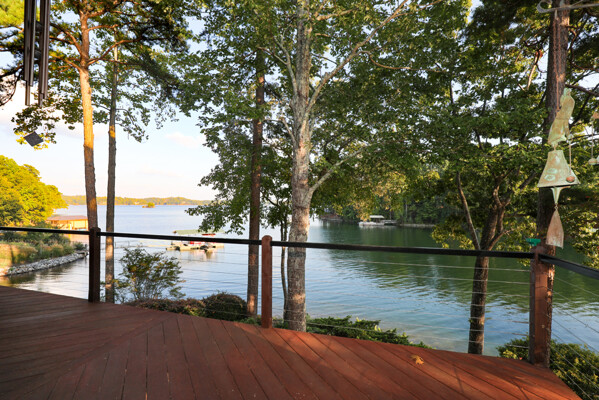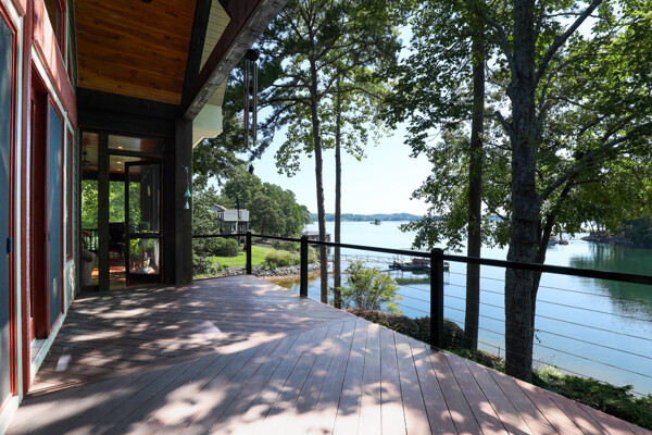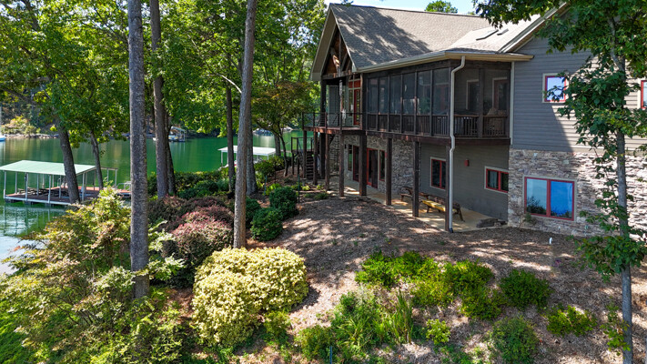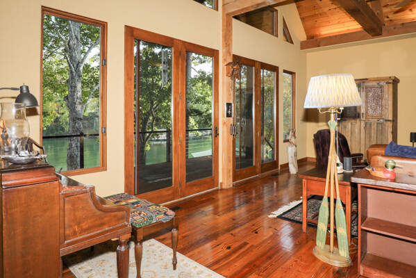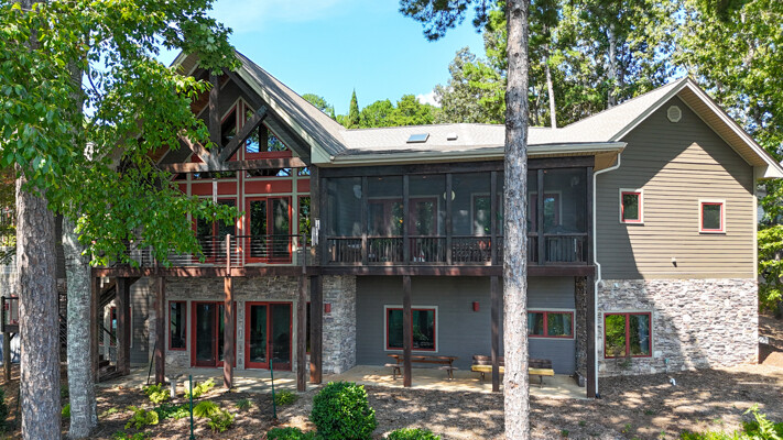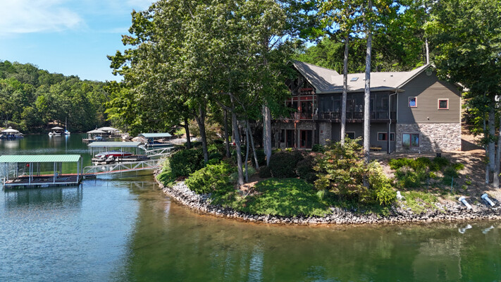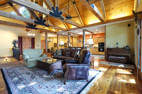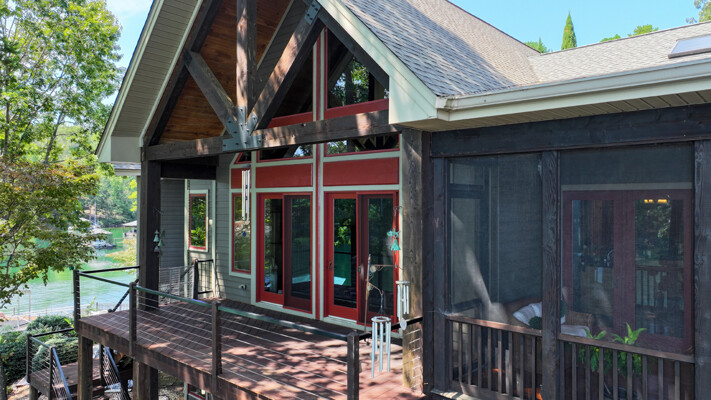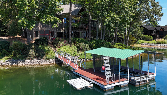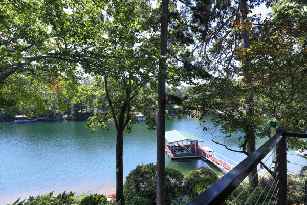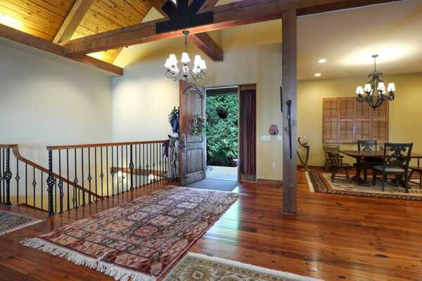 The hand carved, alder front door opens onto a magnificent, TRUE 23' X 19'6" post and beam Great Room. Lakehouse construction of 4 sets, structural Fir King/Queen posts form the basis of the shiplap white pine ceiling. There is nothing but a glass wall between you the deck, a gently sloping, landscaped yard leading to the clear waters of Lake Keowee. Enjoy the 3+ mile view across open water. The full-size covered dock has a 6,000 lb lift. There is antique Heart Pine flooring in the